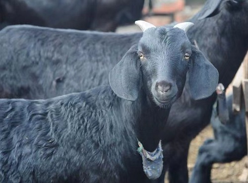 努比亞黑山羊是從非洲引入中國地區(qū)的。努比亞黑山羊被毛細(xì)短、富有光澤;頭較小,額部和鼻梁隆起呈明顯的三角形,俗稱“兔鼻”;兩耳寬大而長下垂至下頜部。頭頸相連處肌肉豐滿呈圓形,頸較長,胸部深廣,肋骨拱圓,背寬而直,尻寬而長,四肢細(xì)長,骨骼堅實,體軀深長,腹大下垂,母羊乳房豐滿而有彈性,乳頭大而整齊,稍偏兩側(cè),是世界著名的奶肉兼用山羊,體高與世界有名的薩能羊相當(dāng)。