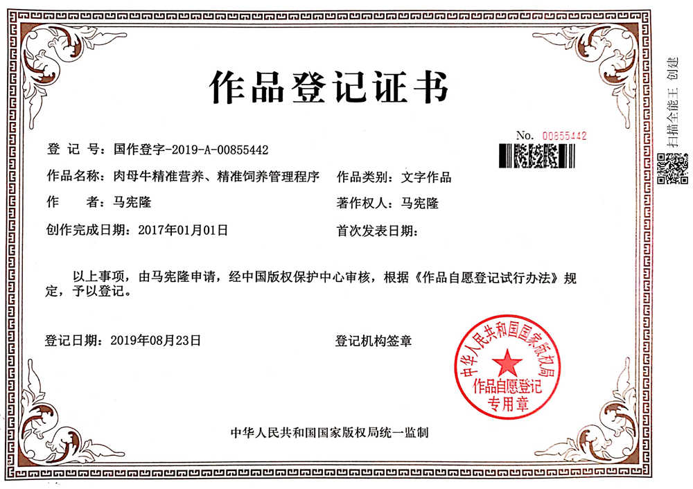 肉牛精準(zhǔn)營養(yǎng)版權(quán)登記證書